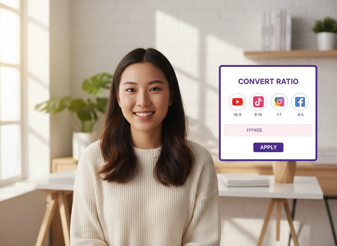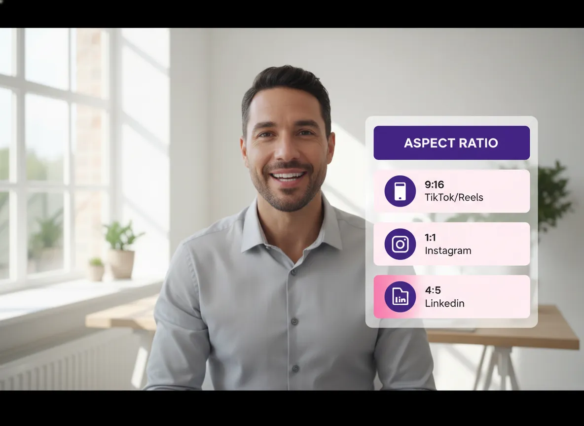 حدد تنسيق الإخراج المطلوب من بين مجموعة متنوعة من نسب العرض إلى الارتفاع بما في ذلك 9:16 لـ TikTok و Reels و 1:1 لـ Instagram أو 4:5 لـ LinkedIn.
