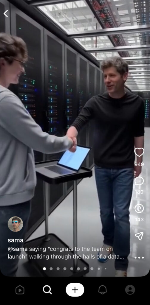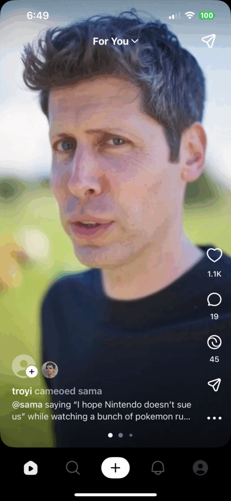 After a one time likeness capture, Sora can insert you or a consenting friend into a generated scene. Controls let you decide who can access your likeness and when to revoke it. This can feel magical and it requires clear boundaries, which the app attempts to provide. Sam Altman’s Cameo is a very popular Cameo on Sora, and you can see videos of him basically everywhere, climbing the El Cap, for example.