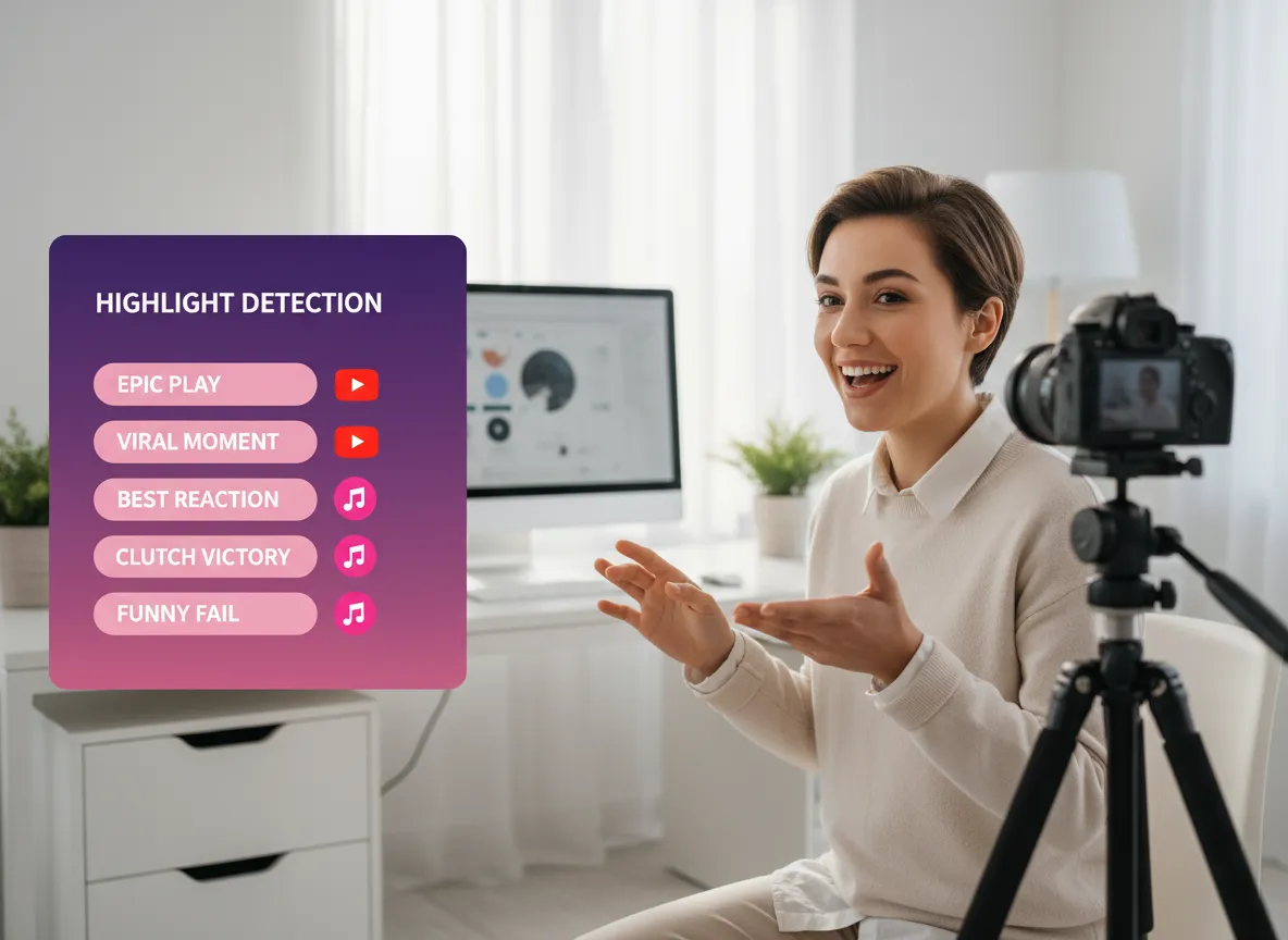 体验极致的效率。从导入海量的 Twitch 直播到发布精美的 YouTube 短视频——包括字幕、品牌推广和 SEO——每一步都在一个无缝的、由 AI 驱动的平台中处理。