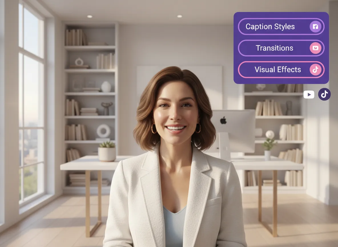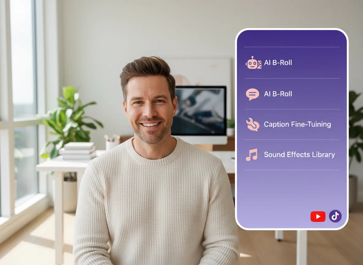 使用我们全面的视频编辑器超越基本剪辑。微调你的字幕,添加 AI 生成的 B-roll,加入音效,或使用高级 AI Studio 模型来创建独特的补充镜头。