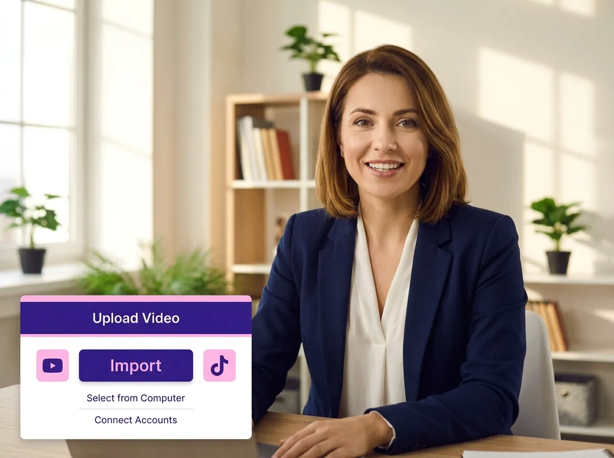 Začněte nahráním svého video souboru do Vizard. Můžete importovat nahrávky, webináře, rozhovory nebo záběry mluvící hlavy přímo ze svého zařízení nebo cloudového úložiště.