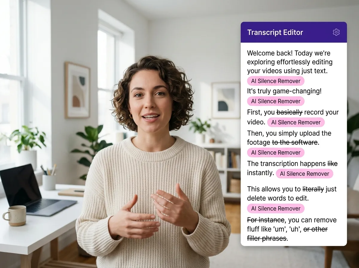 Vizard kombinuje sílu odstraňovače ticha s umělou inteligencí s pokročilou úpravou na základě přepisu pro bezkonkurenční kontrolu. Tento nástroj nejenže automaticky odstraňuje ticho, ale také vám umožňuje vylepšit úpravu pouhým čtením a mazáním textu. Tento duální přístup je ideální pro tvůrce, kteří chtějí zajistit, aby byl zachován jejich přirozený tok řeči a zároveň odstraněny zbytečnosti. Tím, že přesně vidíte, kde se v kontextu vašeho dialogu vyskytují pauzy, můžete činit informovaná rozhodnutí, která bez námahy zlepší celkovou kvalitu vašeho podcastu nebo video eseje.