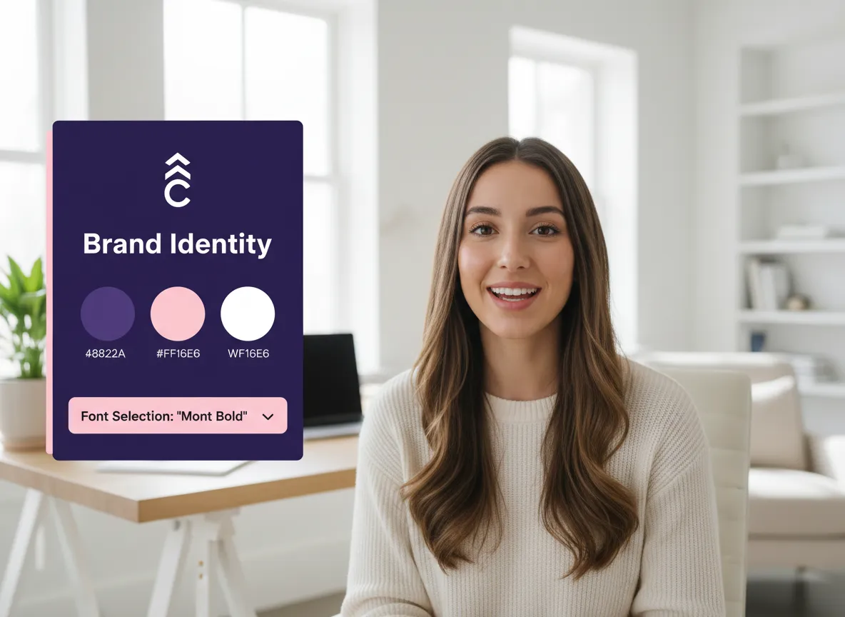 Oprethold et professionelt, ensartet udseende på tværs af alle platforme. Anvend automatisk dit logo, dine brandfarver, brugerdefinerede skrifttyper og vandmærker på hvert klip, hvilket sikrer, at din brandidentitet aldrig går tabt i redigeringen.