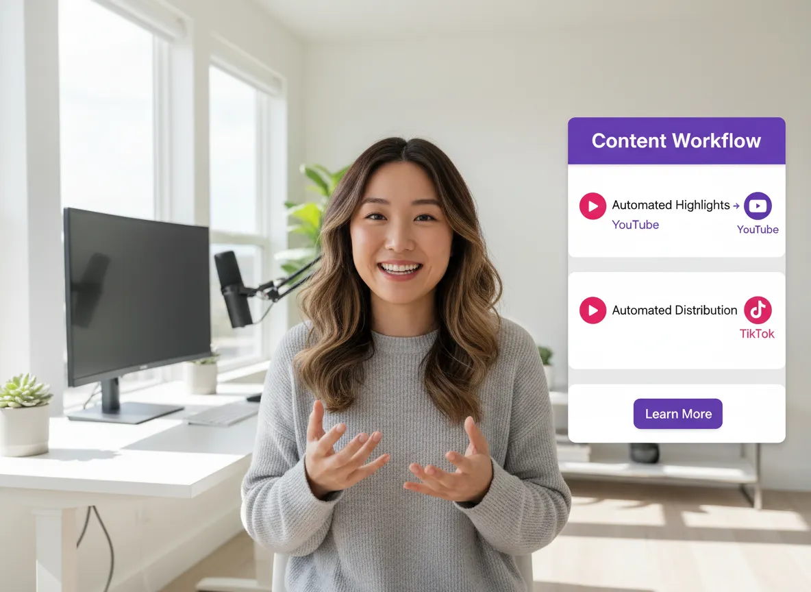 Mere end bare en klipper, Vizard tilbyder en komplet arbejdsgang til genbrug af indhold. Fra at finde højdepunkter til den endelige distribution er hvert trin automatiseret for at hjælpe dig med at producere socialt indhold af høj kvalitet til en brøkdel af prisen.