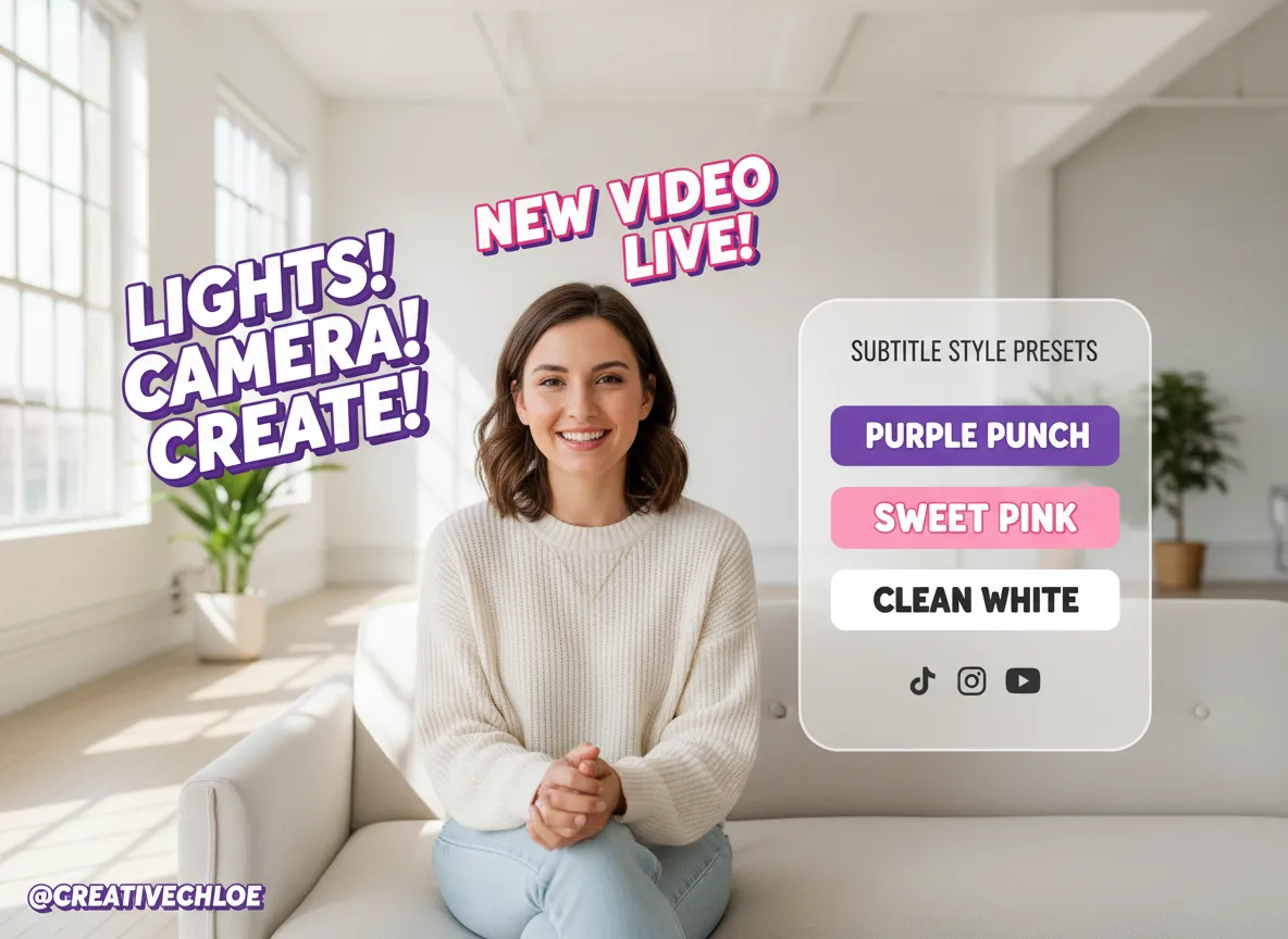Bringen Sie Ihre Videos mit prägnanten, rhythmischen Untertiteln zum Knallen. Wählen Sie aus einer Vielzahl von angesagten TikTok-Stilen, die die Zuschauerbindung und Barrierefreiheit erhöhen.