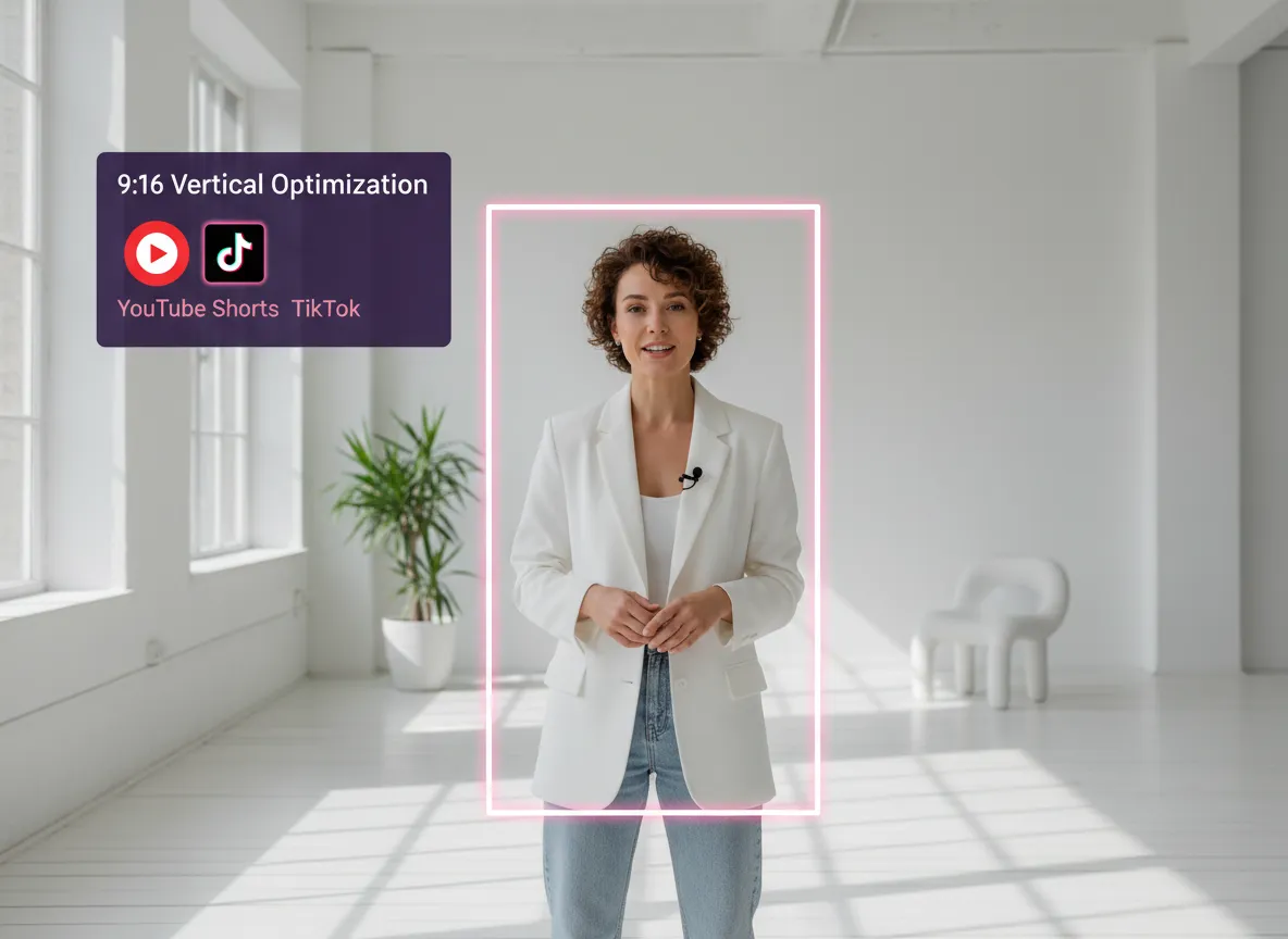 Verwandeln Sie Landschaftsaufnahmen sofort in TikTok-fähige vertikale 9:16-Videos. Unsere intelligente Zuschneidetechnologie sorgt dafür, dass Ihr Hauptmotiv perfekt im Fokus bleibt.