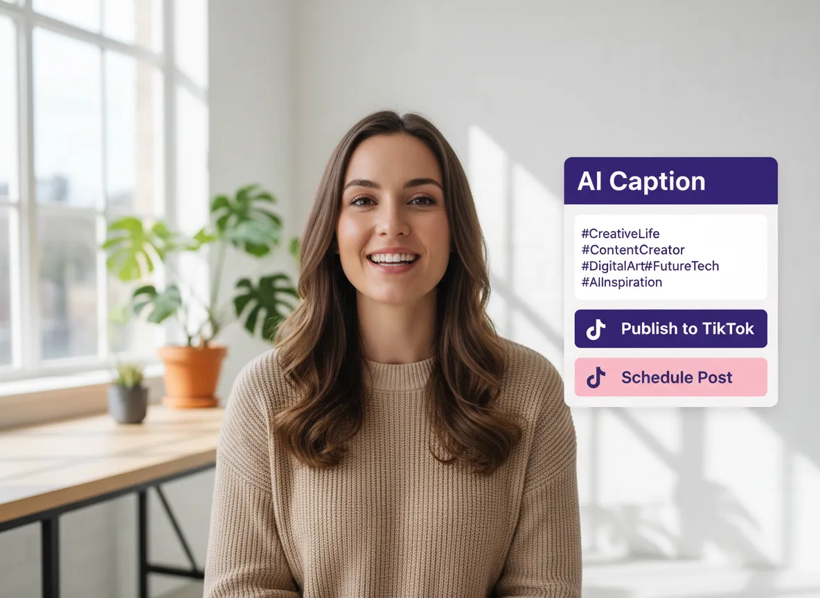 Lasse KI-optimierte Beschriftungen und trendige Hashtags generieren. Wenn du zufrieden bist, veröffentliche direkt auf TikTok oder plane deine Posts für die besten Engagement-Zeiten.