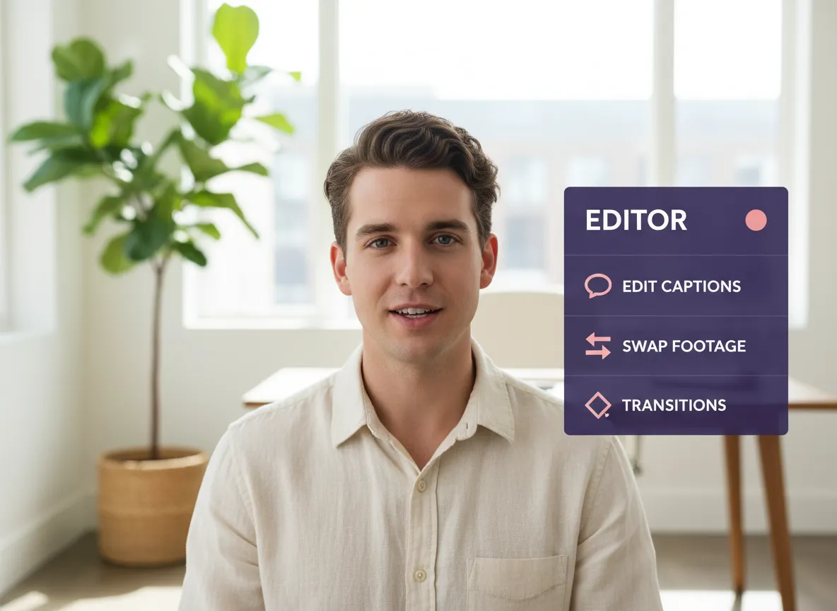 Verwende den Vizard Editor, um deine Clips zu verfeinern. Passe ganz einfach Beschriftungen an, tausche Filmmaterial aus oder füge benutzerdefinierte Übergänge für ein professionelles Finish hinzu.