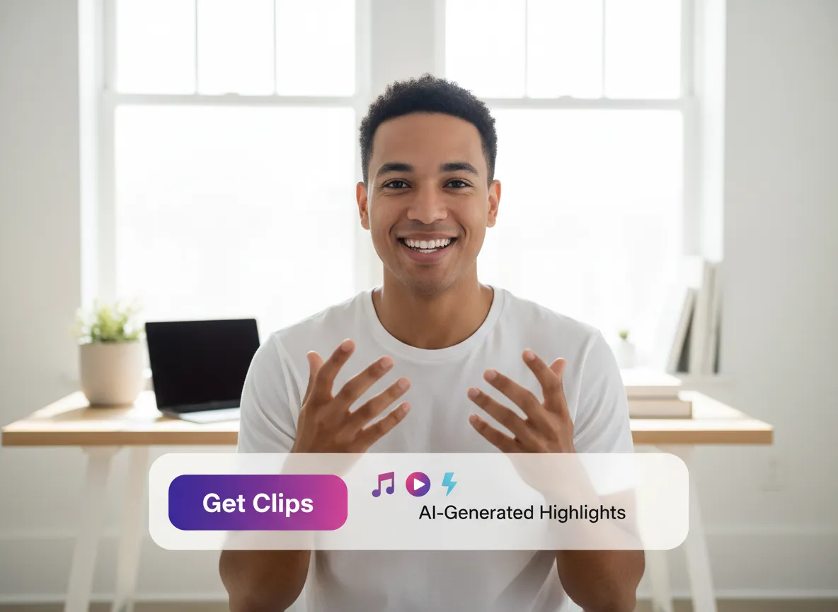 Klicke auf "Get Clips" und sieh zu, wie die KI von Vizard dein Material analysiert, um die spannendsten Highlights zu identifizieren und sie in TikTok-Shorts zu verwandeln, die sofort gepostet werden können.