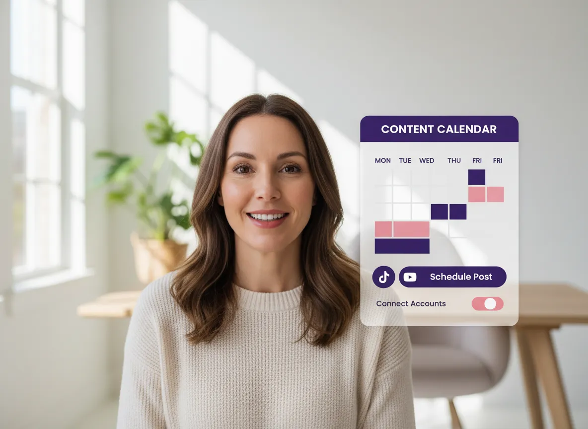 Yhdistä sosiaalisen median kanavasi ja jaa pystyvideosi välittömästi tai käytä integroitua sisältökalenteria julkaistaksesi postauksia parhaaseen aikaan.