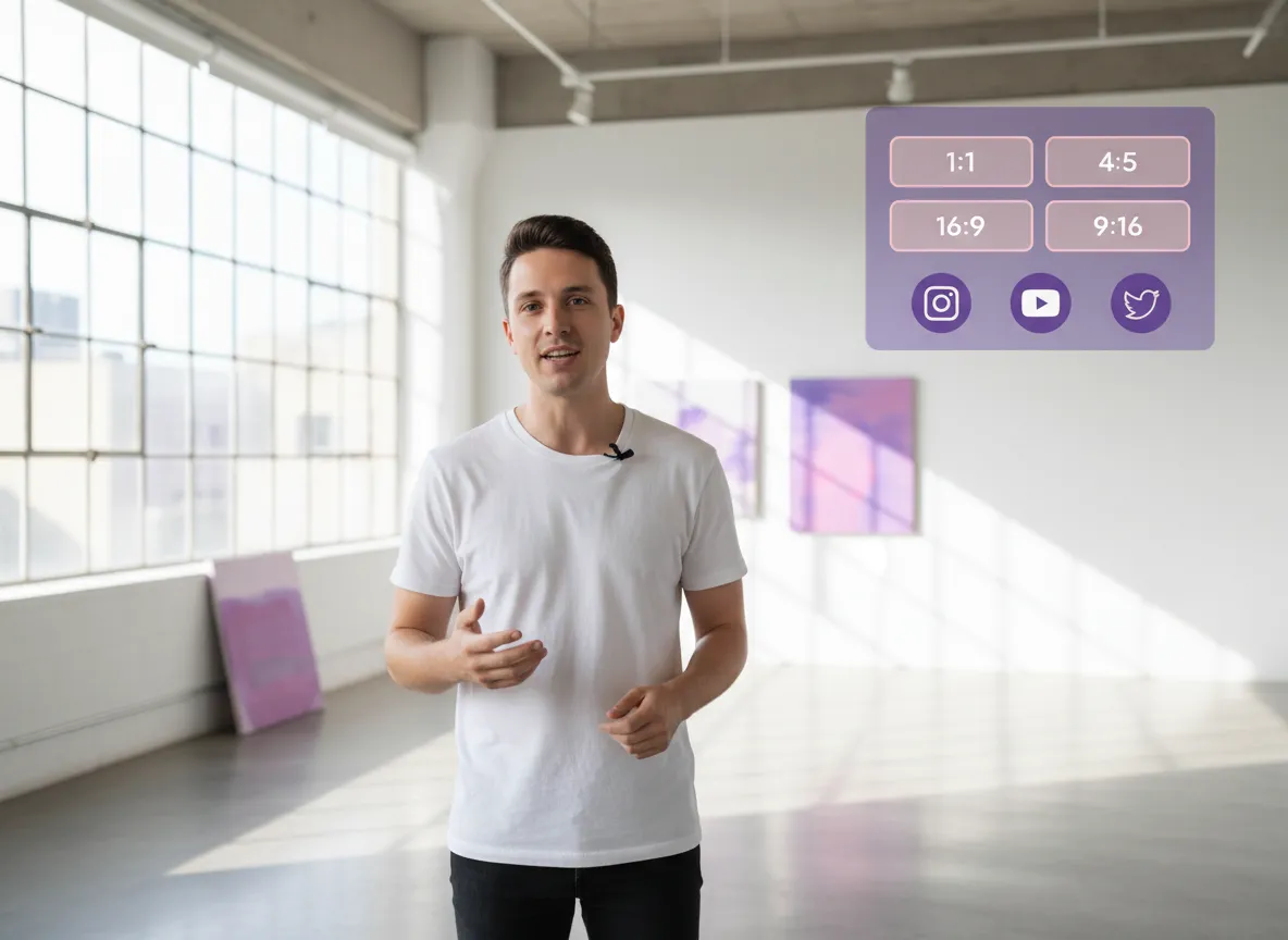 9:16:n lisäksi Vizardin avulla voit helposti vaihtaa 1:1-, 4:5- ja 16:9-kuvasuhteiden välillä. Optimoi sisältösi jokaiselle sosiaaliselle alustalle – Instagram-syötteistä LinkedIniin – yhdellä napsautuksella, kaikki Vizardin joustavan koonmuutosmoottorin avulla.