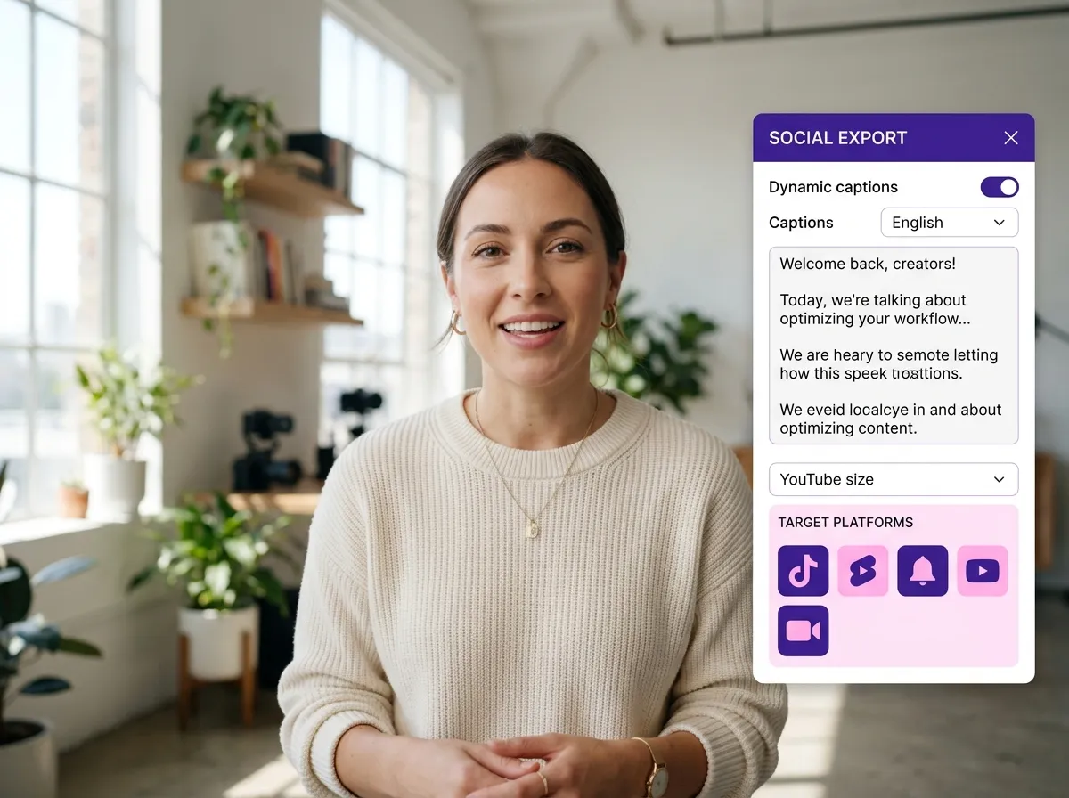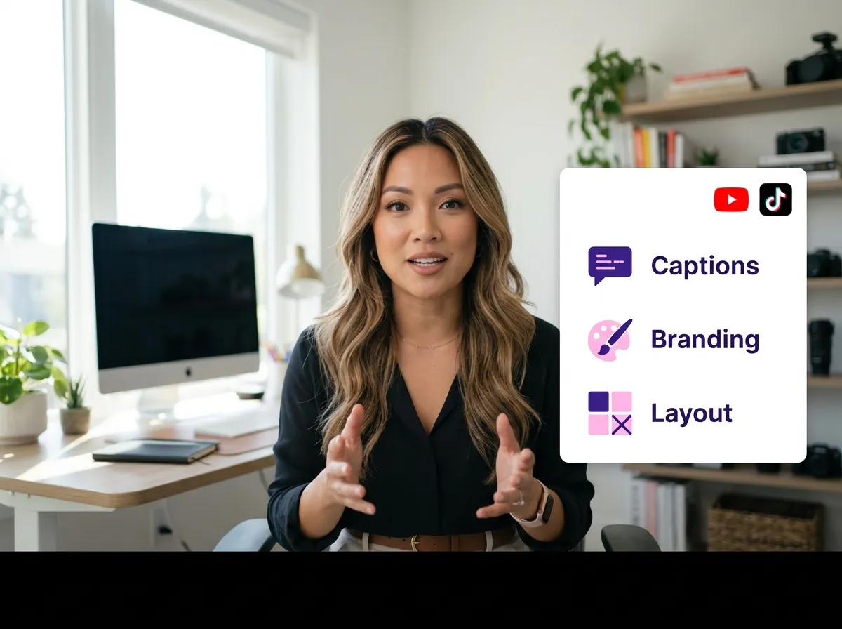 ऑटो-कैप्शन, ब्रांड लोगो और कस्टम रंगों के साथ अपनी क्लिप को बेहतर बनाएं। TikTok और Reels के लिए पहलू अनुपात को 9:16 में समायोजित करें, यह सुनिश्चित करते हुए कि आपके लाइवस्ट्रीम हाइलाइट पेशेवर दिखें और मोबाइल दर्शकों के लिए तैयार हों।