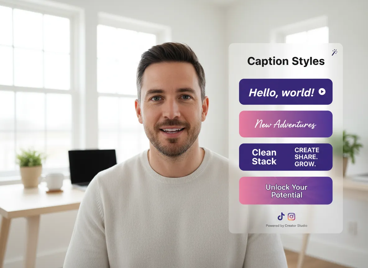 Scegli tra una varietà di modelli di didascalie dinamici e ad alta energia in stile Reel e applica il tuo Brand Kit per mantenere colori e font coerenti.