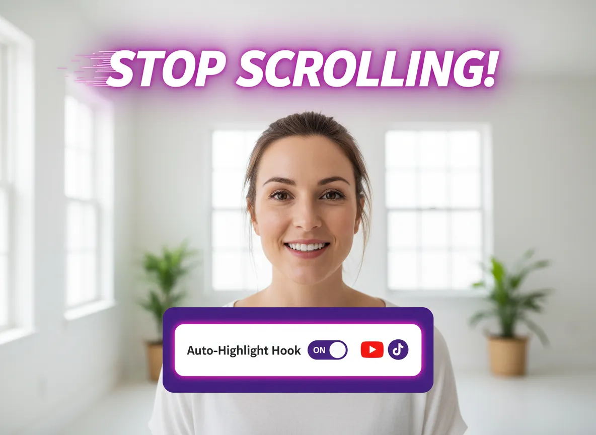 Cattura l'attenzione fin dal primo fotogramma utilizzando Vizard per evidenziare automaticamente l'hook di apertura del tuo video. Vizard applica effetti di testo in grassetto ai tuoi primi secondi, impedendo efficacemente agli utenti di scorrere oltre i tuoi contenuti.