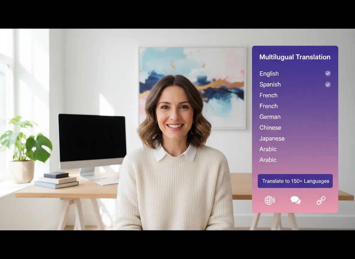 Espandi la tua portata globale senza sforzo utilizzando Vizard per tradurre i tuoi Reel in oltre 150 lingue. Vizard ti aiuta a connetterti con un pubblico internazionale diversificato, consentendoti di far crescere la tua base di follower oltre confine con contenuti localizzati.