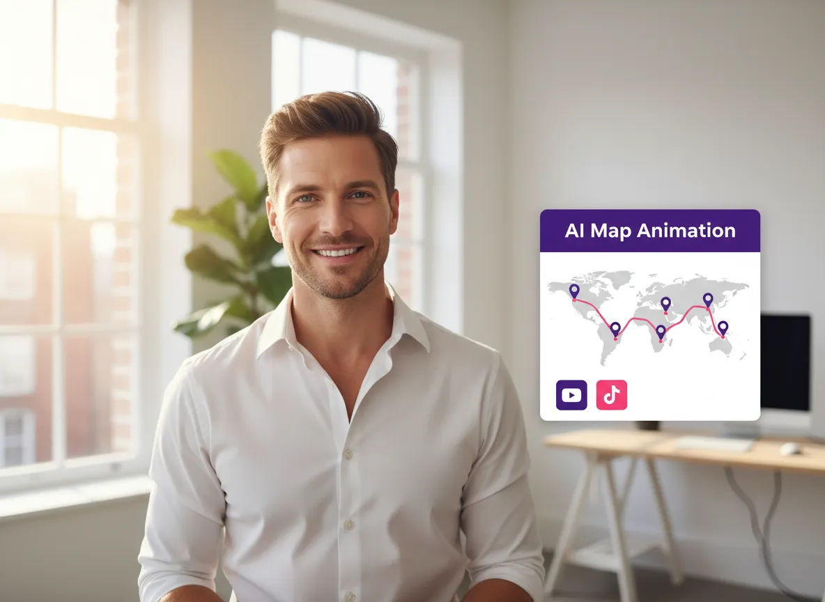 Il Motion Graphics Creator di Vizard include uno strumento di animazione di mappe AI che consente ai creatori di trasformare le descrizioni testuali in immagini geografiche professionali. Semplicemente descrivendo una posizione o un viaggio, puoi generare sequenze di mappe fluide con segnaposto personalizzati, zoom e percorsi. Questa funzione è ideale per i travel vlogger che descrivono in dettaglio gli itinerari o per i giornalisti che illustrano eventi globali. Vizard elimina la necessità di complessi software GIS, permettendoti di creare contenuti di marketing geo-mirati di alta qualità in pochi secondi. Migliora la tua narrazione con animazioni di mappe cinematografiche che catturano l'attenzione e forniscono un contesto chiaro per il tuo pubblico su YouTube e Instagram.