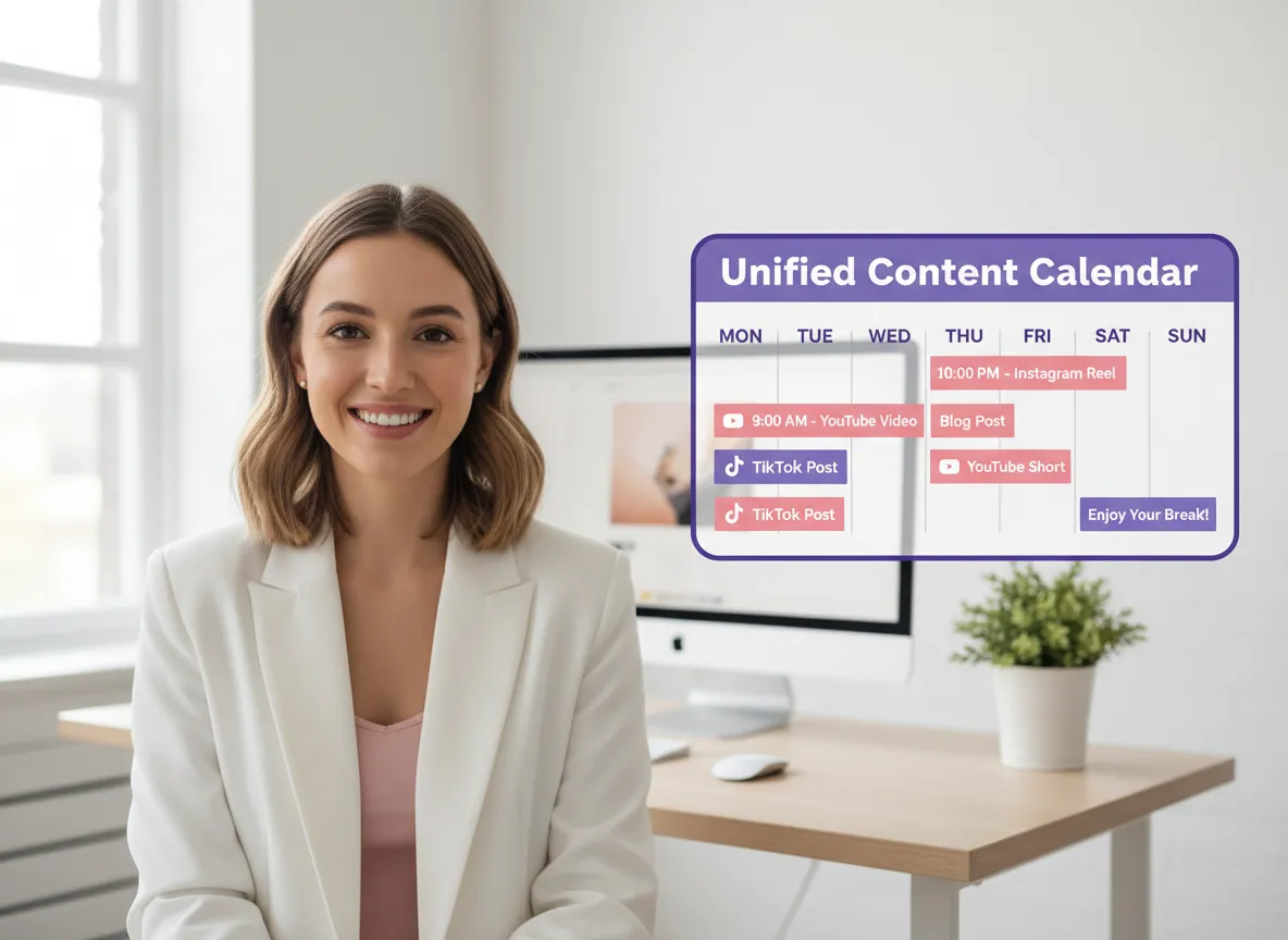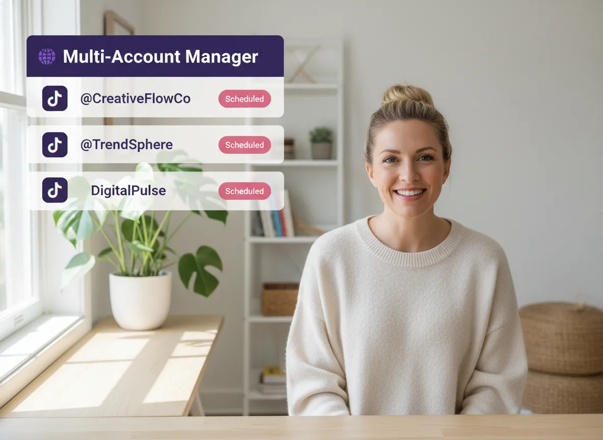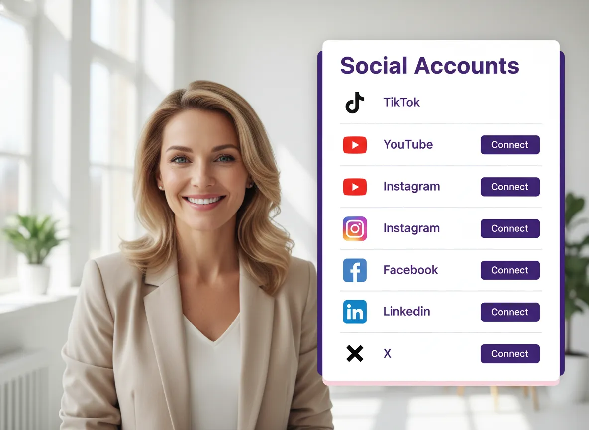 Połącz swoje konta TikTok, YouTube (Shorts), Instagram, Facebook, LinkedIn i X w jednym miejscu. Zarządzaj wieloma markami lub profilami z jednego scentralizowanego centrum bez kłopotów z logowaniem i wylogowywaniem.