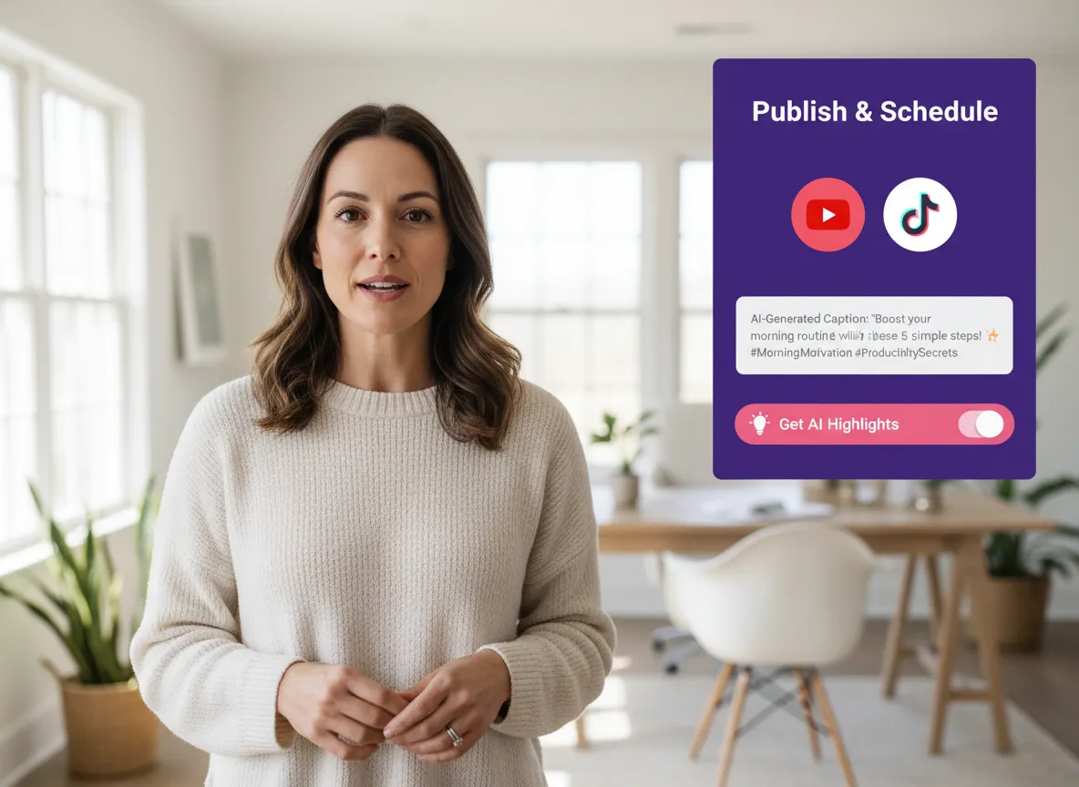Pozwól AI zająć się ciężką pracą. Błyskawicznie generuj angażujące podpisy i popularne hashtagi dostosowane do Twojego filmu, zapewniając, że Twoje treści są zawsze zoptymalizowane pod kątem odkrywania i zaangażowania.