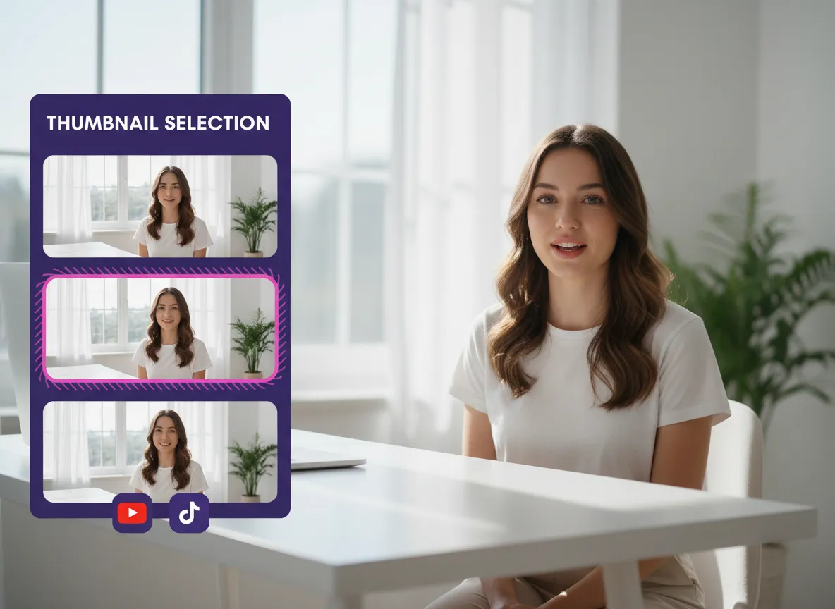 Zatrzymaj przewijanie dzięki idealnemu podglądowi. Ręcznie wybierz lub dostosuj kadr miniatury swojego filmu w Vizard, aby Twoje treści wyglądały nieodparcie na każdym kanale.