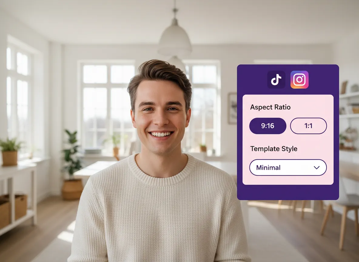 Izaberite svoje ciljne platforme društvenih medija kao što su TikTok ili Instagram, izaberite razmeru (9:16, 1:1, itd.) i izaberite stil šablona koji odgovara vašem brendu.