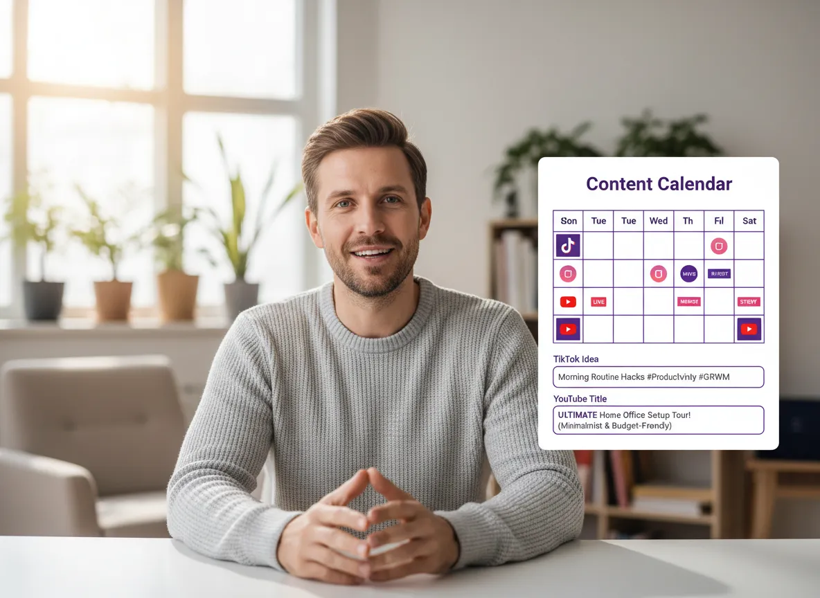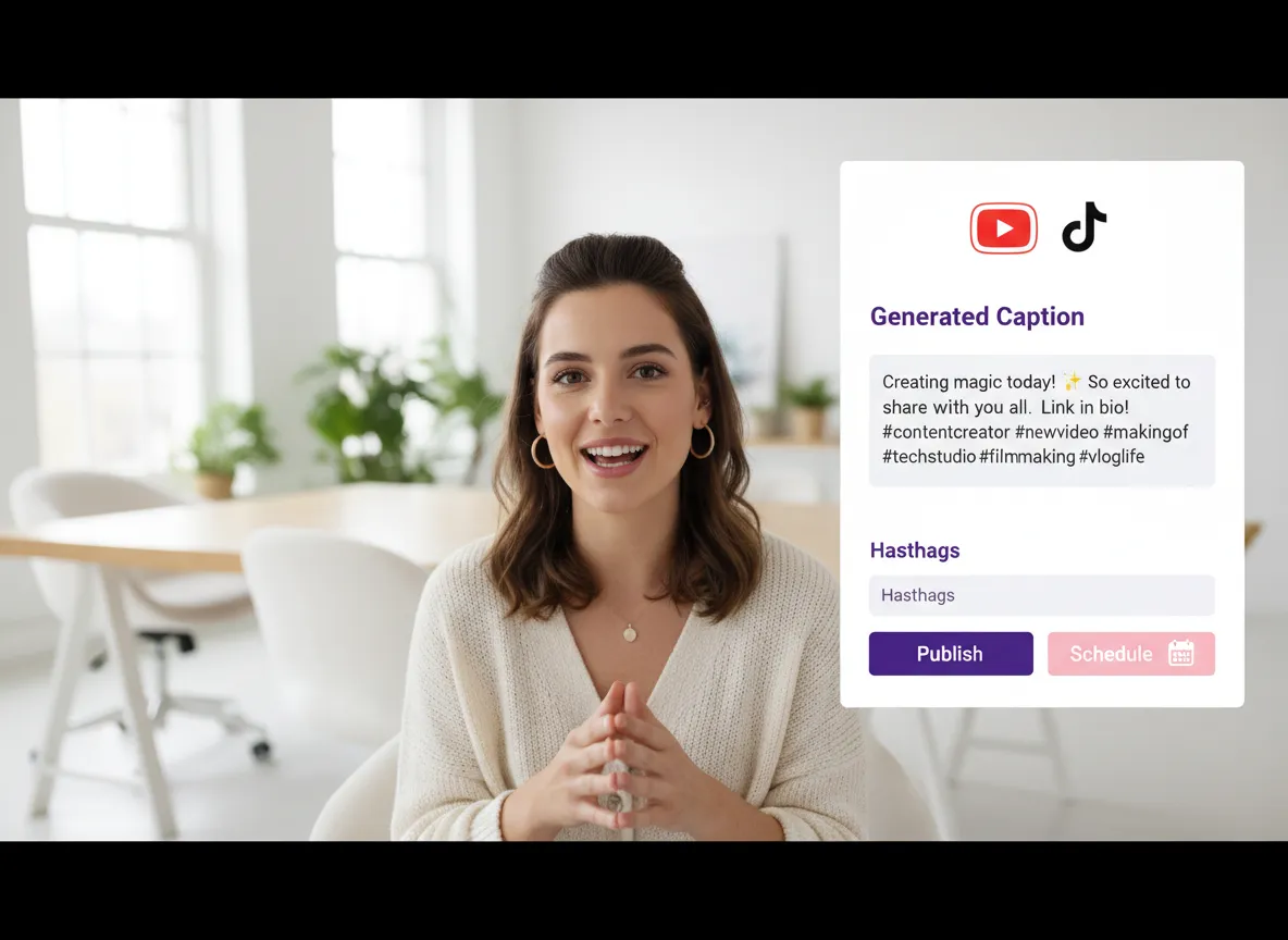 Zatvorite krug od kreiranja do distribucije pomoću Vizard kompletnog radnog procesa koristeći alat za prenamenu videa. Kada su vaši video snimci spremni, sistem automatski generiše naslove, natpise i popularne heštagove specifične za platformu. Povežite do 20 naloga na društvenim mrežama i koristite naš ugrađeni kalendar sadržaja da zakažete svoje objave na TikTok-u i Instagramu. Ovaj holistički pristup omogućava kreatorima da održavaju dosledan raspored objava bez dodatnog napora.