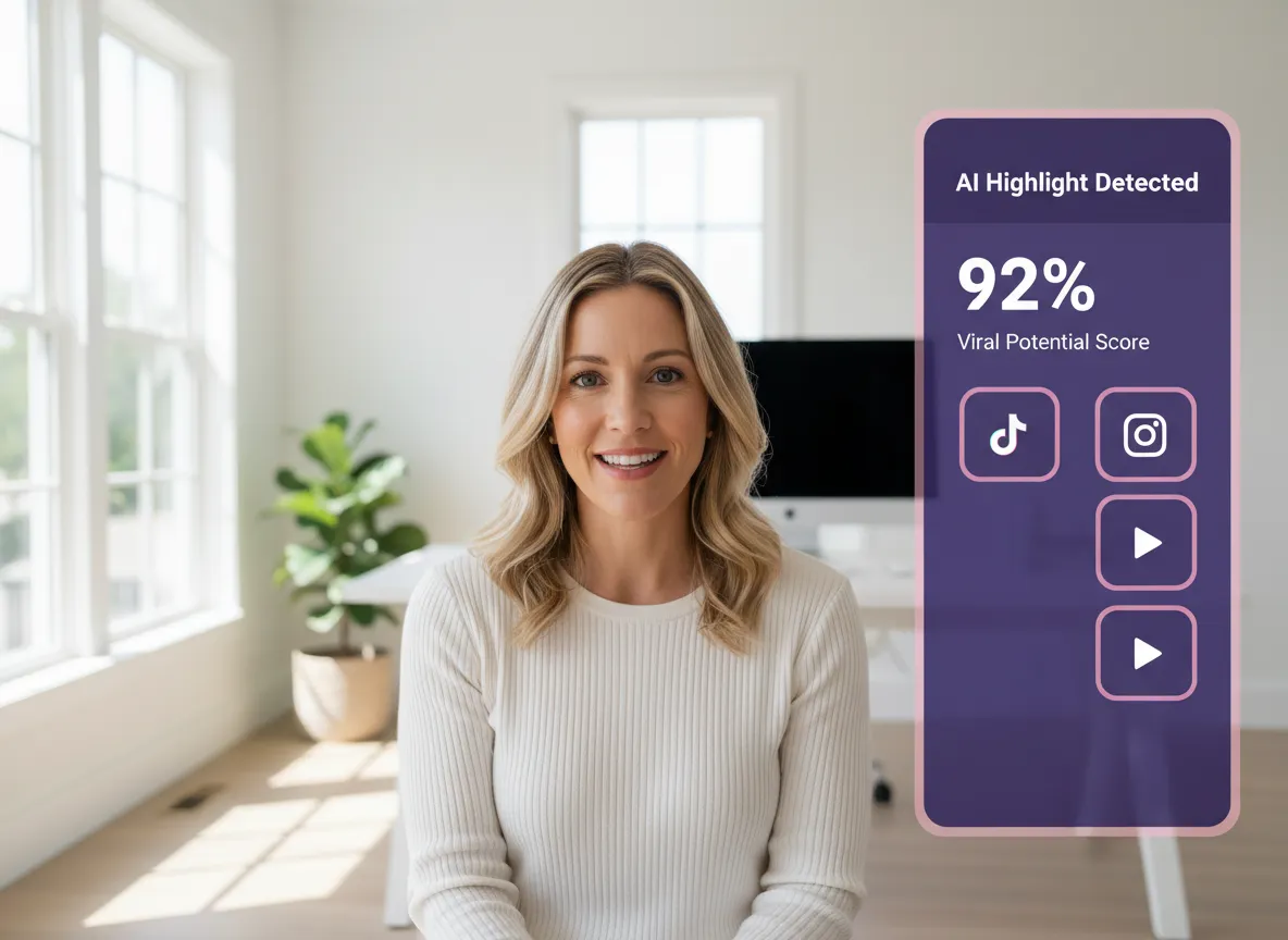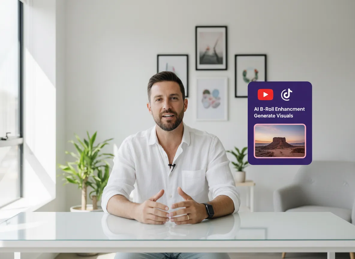 Podignite produkcijsku vrednost svojih klipova koristeći Vizard-ov integrisani AI Studio. Naš alat za prenamenu video snimaka automatski uparuje relevantne B rolne sa vašim snimkom i uklanja neprijatne tišine kako bi optimizovao tempo. Ovo stvara uglađeno iskustvo gledanja koje drži publiku zainteresovanom i podstiče veće zadržavanje gledalaca. Savršen je za kreatore podkasta i domaćine vebinara koji žele da statične video snimke glava koje govore pretvore u dinamičan sadržaj.