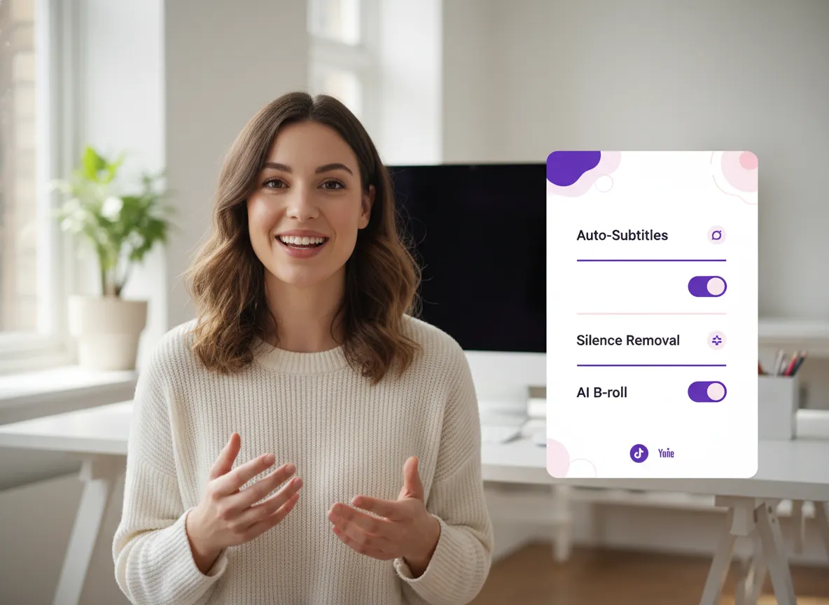Uključite napredne AI funkcije uključujući automatske titlove na 30+ jezika, uklanjanje tišine za bolji tempo i AI B-roll da biste učinili vaš sadržaj privlačnijim.