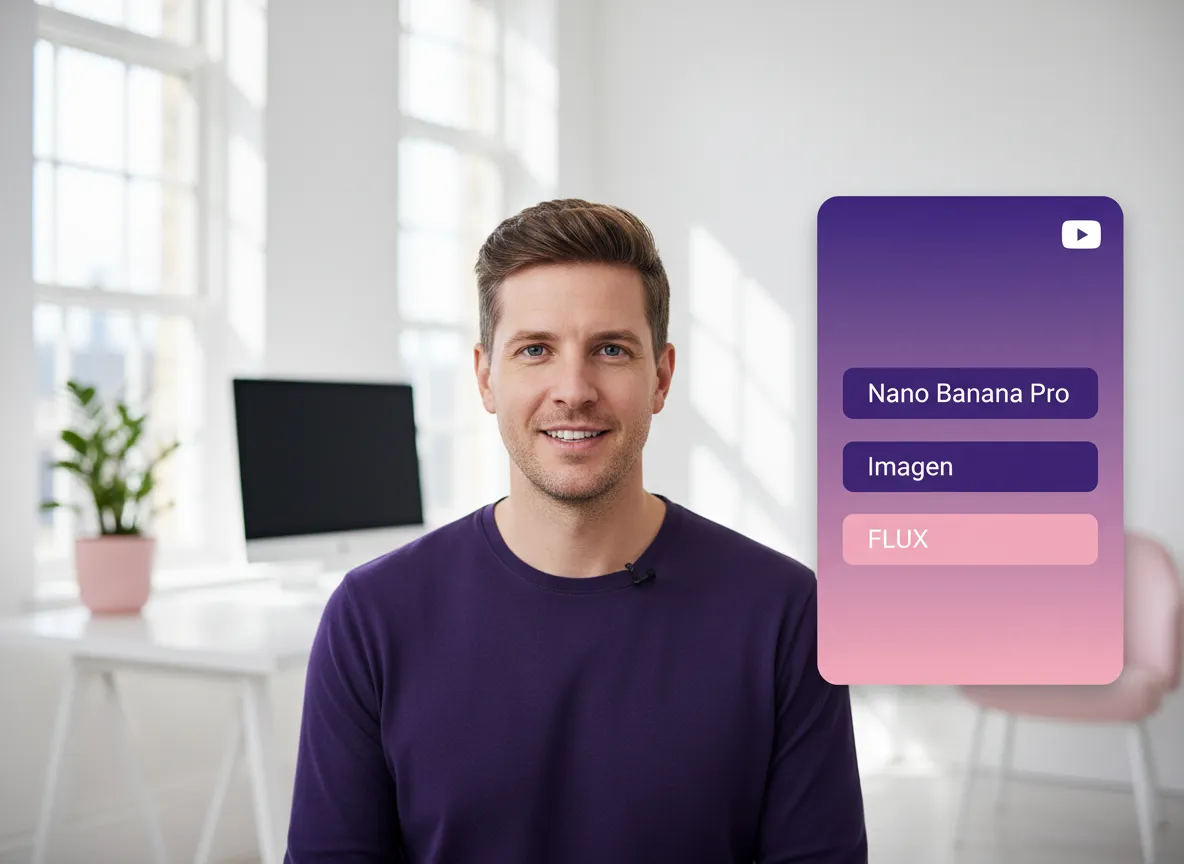 Transform your ideas into eye-catching YouTube thumbnails instantly. Upload your brand logo or personal photos as reference images and let Vizard's state-of-the-art models like Nano Banana Pro, Imagen, and FLUX bring your vision to life with a single prompt.